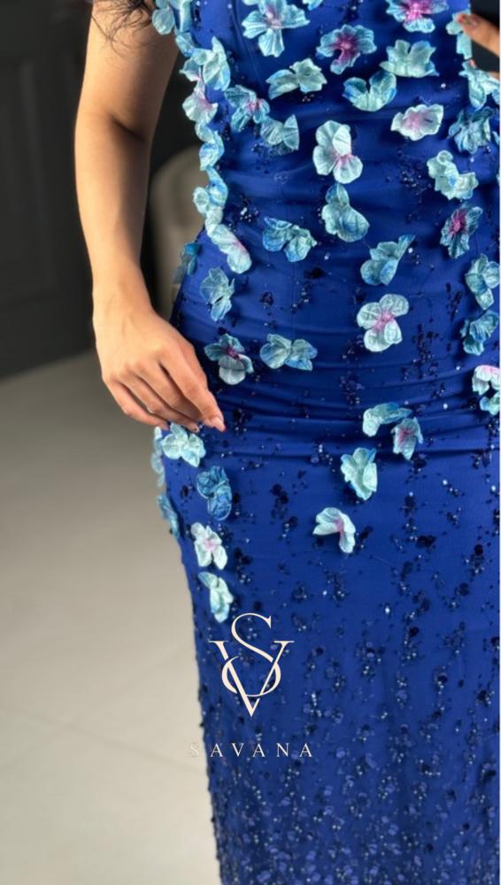 فستان ازرق ترتر من سافانا يجمع بين الأناقة والجرأة و يتميز بتفاصيل الورد المزينة بالترتر اللامع و مما يضفي لمسة ساحرة على الإطلالة و تصميمه الجذاب يعكس الأنوثة و بينما القصة المنسابة تضيف راحة وأناقة في كل حركة.
